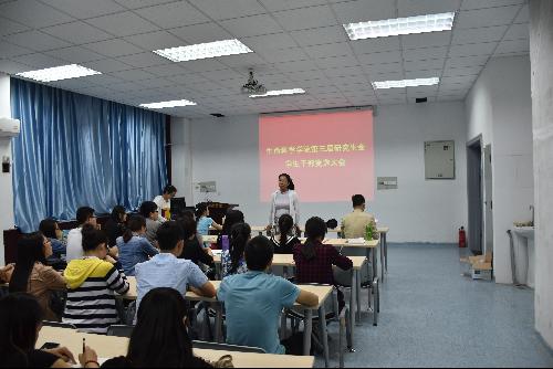 2016年5月19日晚8点在理科楼B111隆重举行了det365登录网站主页第三届研究生会干部换届选举大会。研究生辅导员康乐老师和第一届研究生会主席李核同学以及包括第二届研会主席李彦在内的2014级全体研会干部担任了此次大会的嘉宾。除了研究生会2014级和2015级所有干部外,det365登录网站主页2015级研究生各班班长、团支书以及学生代表也参加了此次大会。会议由研会副主席黄婷主持。